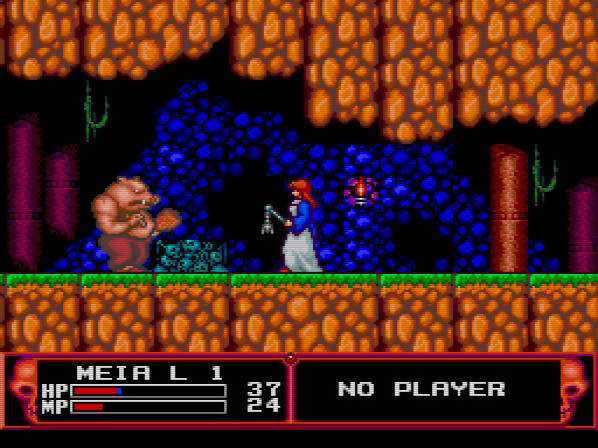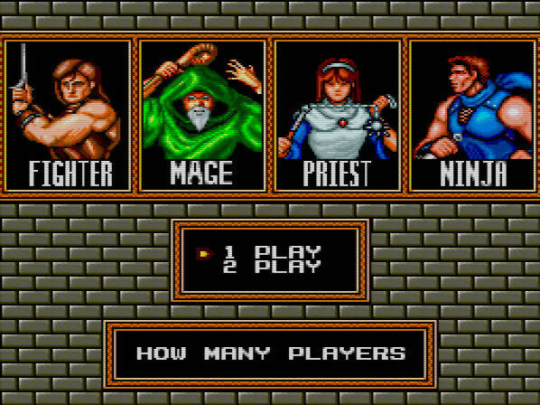 A história segue o cliché habitual. O jogo decorre num mundo de fantasia medieval e eventualmente lá surge um vilão que rapta uma princesa. Nós representamos um aventureiro genérico que recebe a tarefa de resgatar a princesa e derrotar a besta que a raptou. Enquanto a versão arcade poderia permitir multiplayer até 4 jogadores, esta versão PC Engine permite apenas 2 jogadores em simultâneo, embora sinceramente não o tenha experimentado. Ainda assim, antes de começarmos a aventura temos a hipótese de escolher uma de 4 personagens distintas para representar: o guerreiro, o típico bárbaro musculado com muita força física e que ataca com uma espada, porém não é o mais ágil nem pode usar magia. O feiticeiro por outro lado é mais fraco fisicamente, mas pode aprender e usar vários feitiços. A “priestess” (é estranho usar a palavra padre no feminino) que apesar de ser fraca fisicamente, ataca com uma espécie de chicote à lá Simon Belmont, tendo assim um alcance considerável e tem também a vantagem de aprender feitiços regenerativos. Por fim a última classe é um ninja, que é ágil e ataca com projécteis. A curandeira é de longe a personagem mais acessível para se jogar devido ao longo alcance da sua arma (que pode inclusivamente ser usada para atacar na diagonal) e pelos seus poderes regenerativos. O ninja com a possibilidade de atirar projécteis rapidamente também dá jeito! O guerreiro e o feiticeiro são talvez as classes mais difíceis de jogar, pelo menos no início. O guerreiro é forte fisicamente mas o seu ataque de curto deixa-nos muito a jeito para sofrer dano. O feiticeiro é fraco e a sua arma tem um alcance ainda mais curto. É certo que eventualmente iremos desbloquear feitiços poderosos, mas esses têm também um custo, para além que usar magia não é tão simples e directo como atacar normalmente.