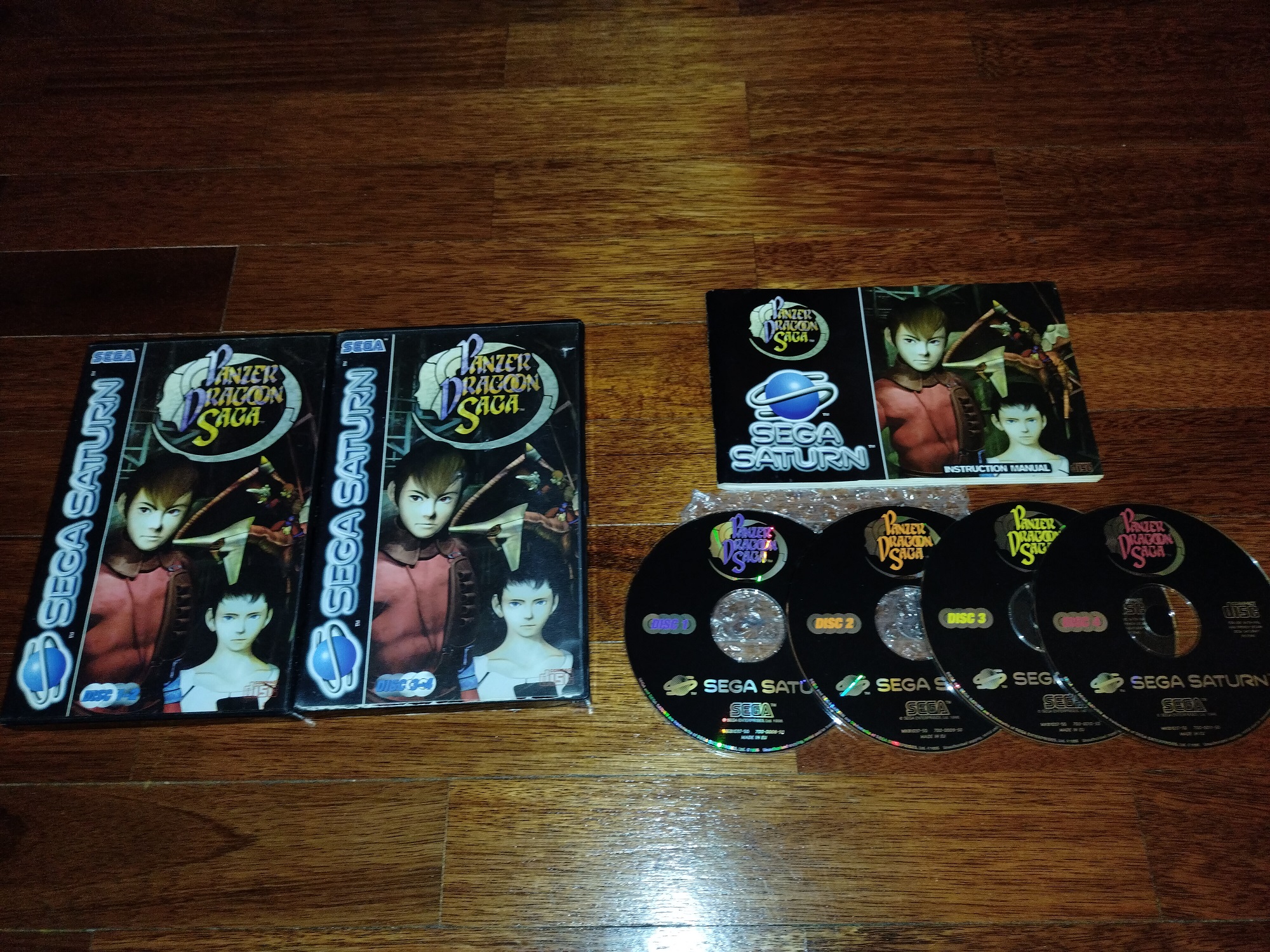 Durante as últimas semanas tenho jogado aos poucos este clássico da Sega Saturn. O Panzer Dragoon original foi sem dúvida o jogo de lançamento da Saturn mais imponente e original e foi rapidamente sucedido pela sua sequela Panzer Dragoon Zwei, que apresentou melhorias em todos os campos face ao seu antecessor. Ambos eram shooters tridimensionais e on rails, onde montávamos um dragão e teríamos de disparar sobre tudo o que mexesse, ao longo de um caminho pré-determinado, se bem que com alguns graus de liberdade. Neste Saga, a Team Andromeda decidiu explorar mais a fundo todo o misticismo do lore que criaram com esta série e o resultado é um RPG com mecânicas de jogo muito originais. Infelizmente a Sega já estava numa posição demasiado frágil no mercado quando este jogo saiu para as lojas no ocidente, algures na primavera de 1998. O resultado foram poucas cópias vendidas na época e, com o jogo a adquirir um estatuto de culto pelos poucos que o jogaram, os seus preços têm vindo a subir constantemente desde então. O meu exemplar foi comprado às prestações: primeiro comprei, num negócio do OLX há uns anos atrás, uma caixa do CD3 e 4 por 20€. O problema é que trazia o CD3 e 1… poucos meses depois consegui encontrar no ebay britânico a caixa dos CDs 1, 2 (com os discos certos!) e o manual por 80 libras. Faltava o CD4 que consegui finalmente arranjá-lo em Agosto após uma troca que fiz com um conhecido que aceitou trocar o meu CD1 repetido por um CD4. O total ficou então por pouco mais de 100€, um valor muito aquém do que pedem actualmente. Fica apenas a faltar a sleeve exterior de cartão, que sinceramente não faço assim tanta questão em ter, mas pode ser que um dia apareça!