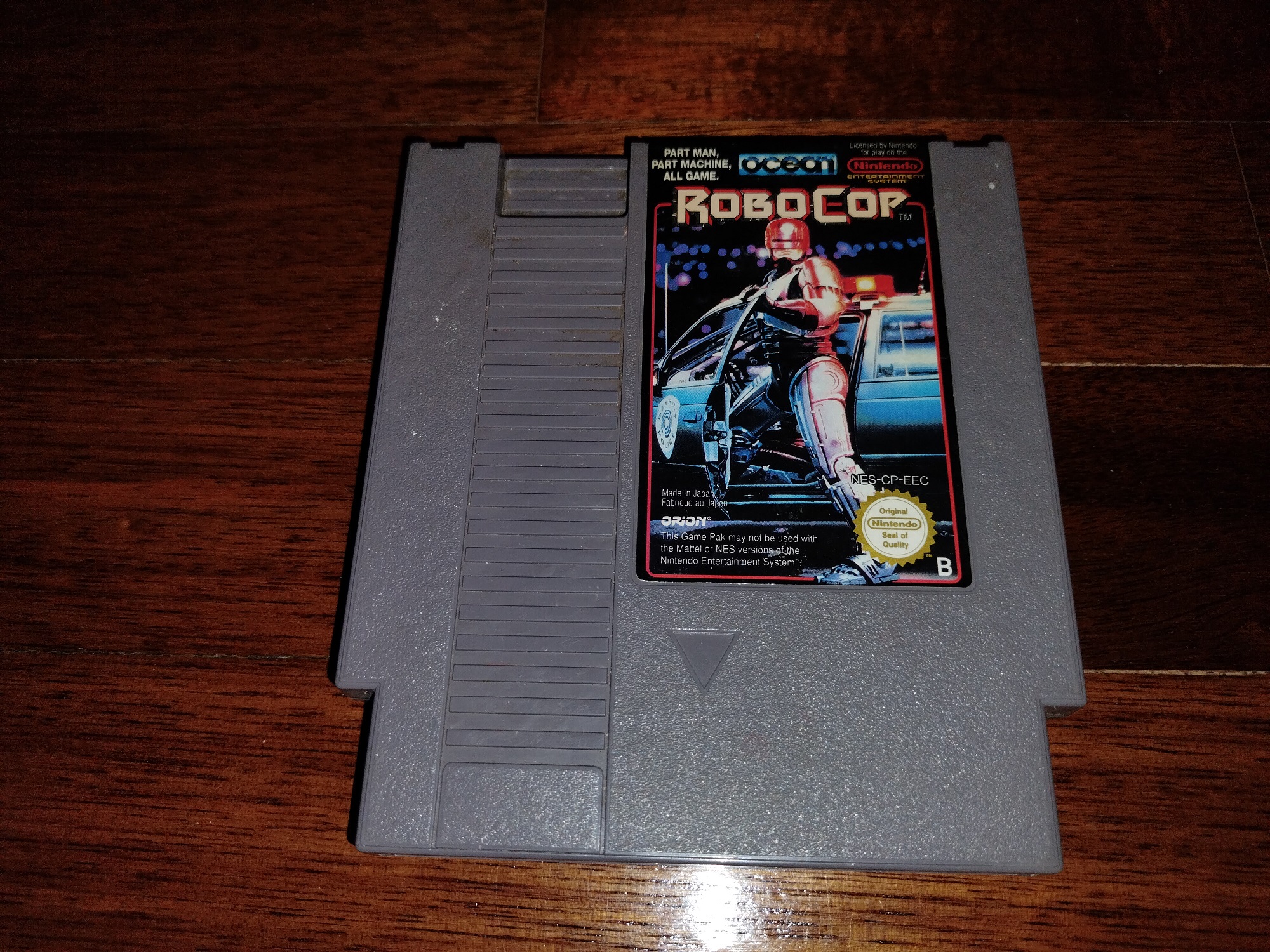 Vamos a mais uma rapidinha, desta vez para mais uma adaptação de filme para videojogo, algo que a certo ponto se tornou uma especialidade da britânica Ocean Software, em busca de ganhar mais umas coroas devido ao maior reconhecimento do produto por parte do público geral. A Ocean adquiriu os direitos para criar videojogos sobre o Robocop numa altura em que o filme estava ainda na sua fase conceptual. Entretanto, a Ocean sub-licenciou a nipónica Data East para produzir uma versão arcade, sobre a qual muitas das outras versões que saíram em seguida se basearam. Incluindo esta da NES, naturalmente. O meu exemplar foi comprado a um amigo meu no passado mês de Setembro por 5€.