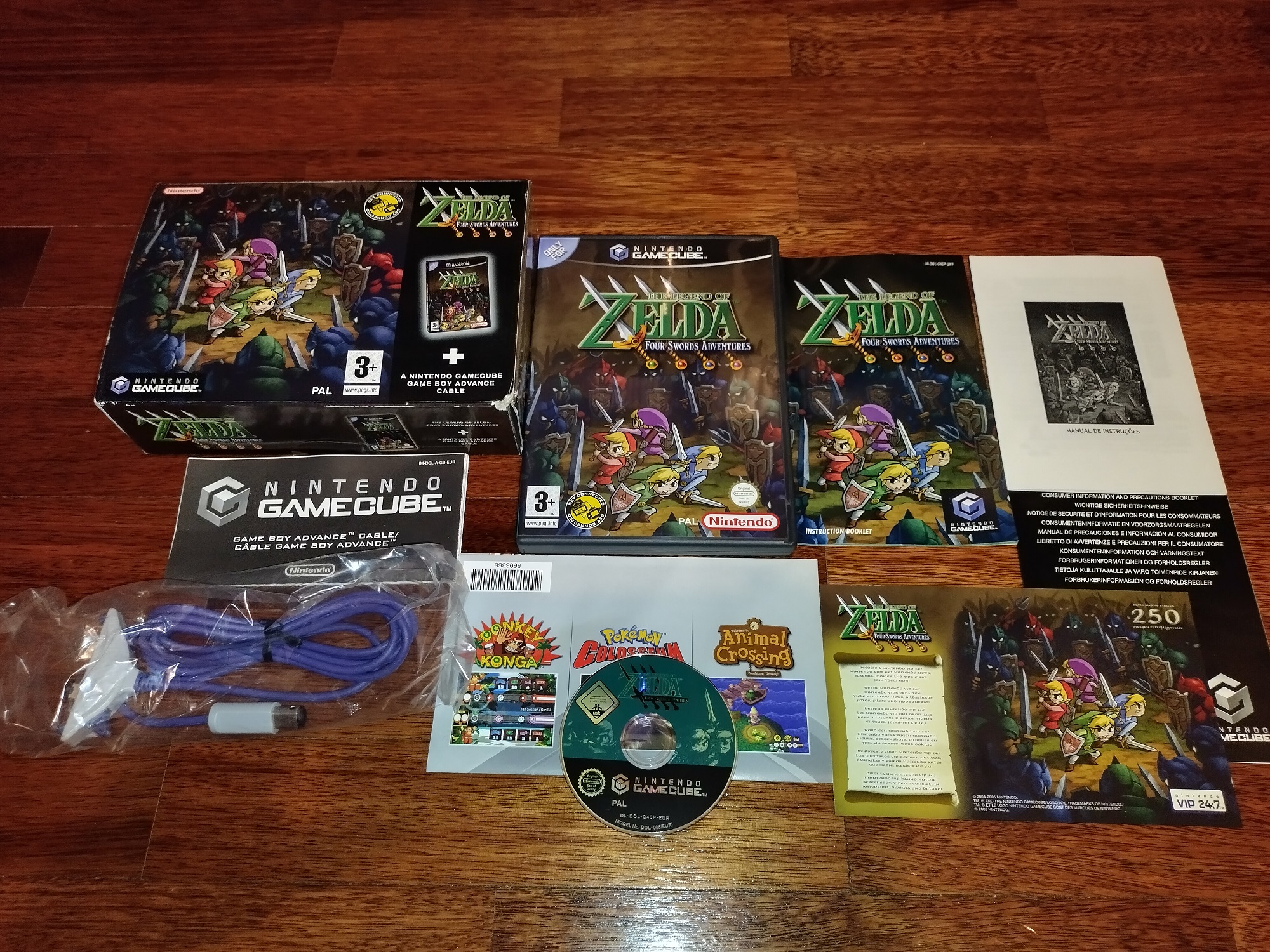 Quando a Capcom converteu o The Legend of Zelda: A Link to the Past para a Game Boy Advance, incluiram um extra muito interessante: um jogo à parte intitulado de Four Swords. Esse Four Swords era um jogo inteiramente multiplayer que obrigava à utilização de cabos de ligação entre GBAs, permitindo até um máximo de 4 jogadores que atravessassem diferentes mapas, resolvendo muitos dos seus puzzles, que por sua vez eram diferentes consoante o número de jogadores. Era um jogo que obrigava à cooperação entre jogadores tanto nos seus puzzles como nos combates, mas também encorajava alguma competição, pois no fim da dungeon ganhava quem tivesse coleccionado mais rupees. A Nintendo entretanto relançou, mais tarde e para a Nintendo DSi/3DS uma versão digital desse jogo intitulada de Four Swords Anniversary, com algumas novidades entre elas a possibilidade de, pela primeira vez, o jogo poder ser jogado sozinho. Entretanto, antes disso, a Nintendo lançou também este Four Swords Adventures, um jogo inteiramente novo, embora com conceitos similares, para a Nintendo Game Cube. O meu exemplar foi comprado algures em 2005/2006, creio que no saudoso Miau.pt e por 25€ se bem me recordo.