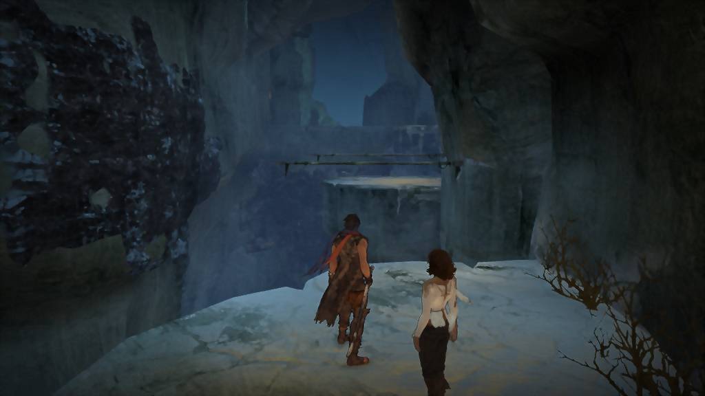 Agora as coisas más: a opinião geral é que este é um jogo bastante fácil e isso de facto acontece pois não podemos morrer. Seja no platforming com algum salto mal calculado ou no combate, quando algum inimigo nos está prestes a aplicar um golpe fatal, a Elika entra sempre, sempre em cena e safa-nos da morte certa. Bom, sinceramente eu nem achei isto uma má ideia de todo, a Elika é então uma espécie de checkpoint ambulante e, tendo em conta que tal como nos Assassin’s Creed muitas vezes a personagem salta numa direcção completamente diferente do que a que eu tencionava, ter essa ajuda é bem-vinda. Nos Sands of Time poderíamos voltar atrás no tempo e corrigir os nossos erros, aqui a Elika faz-nos isso. E no combate, com os problemas que mencionei acima, ter a Elika como segurança adicional também é uma grande ajuda. Mas neste caso, sempre que ela nos salva, o inimigo recupera um pouco da sua vida também, pelo que teremos mesmo de eventualmente aprender a combater decentemente.