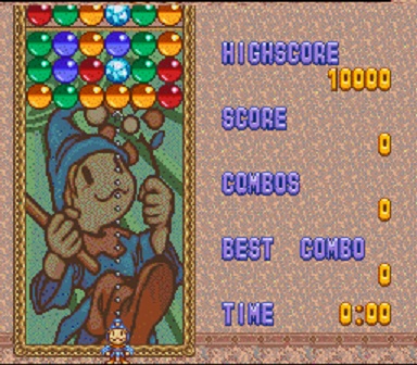 Mencionei a questão da tradução porque os próximos dois jogos tiveram esse mimo. O primeiro é o Magical Drop, um jogo de puzzle também com as suas origens nas arcades. Recebeu conversões para vários sistemas ao longo dos anos, mas apenas a versão Gameboy Color teve um lançamento físico no ocidente. A versão SNES foi no entanto traduzida nada mais nada menos pelo pessoal da Aeon Genesis, agora também com um projecto profissional chamado de Time Capsule Games, pelo que a poderemos jogar em inglês neste cartucho. É um puzzle game, não há muito para traduzir, mas não deixa de ter sido uma óptima ideia e só tenho pena que não tenham traduzido também o Fighter’s History acima mencionado.