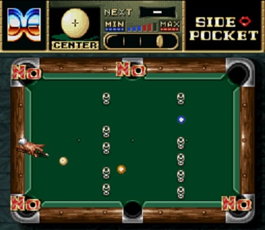 Por fim temos o Side Pocket, um jogo de bilhar e o único desta compilação que tinha chegado a sair na Europa. Apesar de o original arcade ter sido desenvolvido pela Data East, a versão que aqui temos foi uma espécie de remake trabalhado pela Iguana. Dispomos de vários modos de jogo, como o Pocket Game que pode ser jogado sozinho ou contra um amigo, bem como o 9-Ball que poderá também ser jogado com um amigo. O Pocket Game é o principal modo de jogo, onde teremos de percorrer várias cidades norte-americanas e vencer uma série de desafios. O objectivo em cada partida é o de encaixar todas as bolas nos buracos do bilhar, tendo em conta que cada vez teremos um objectivo maior de pontos para avançar para o nível seguinte. Ganhamos pontos adicionais se conseguirmos encaixar bolas na sua sequência numérica, se as conseguirmos encaixar seguidas sem falhar jogadas ou se conseguirmos meter alguma bola no buraco que o jogo eventualmente indica. Depois dessa partida ainda poderemos vir a ter alguns desafios adicionais antes de avançar para a cidade seguinte, como encaixar algumas bolas sem partir copos de vidro que estejam espalhados pela mesa.