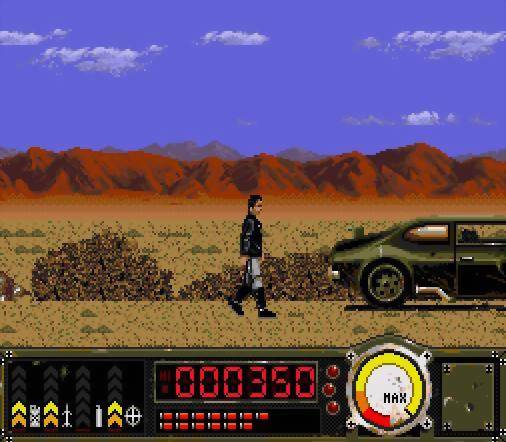De resto é um jogo muito similar, tendo na mesma uma única estrada pejada de inimigos para combater (se bem que com menos inimigos, apenas motards e helicópteros) e sempre que ficamos sem combustível (ou caso estejamos prestes a morrer) devemos parar o que estamos a fazer e sair do carro em busca de mantimentos. Pelo meio iremos ter também toda uma série de povoações para explorar, onde mantimentos são ligeiramente mais abundantes. Mas sim, continua um jogo extremamente repetitivo, apesar de ter algo melhor que a versão Mega Drive, os controlos. Aqui como o comando da SNES como tem mais botões, a função de cada botão está melhor distribuída, com o L e R a terem funcionalidades muito importantes: permitem-nos disparar a shotgun no carro para a esquerda ou direita, ao contrário da versão Mega Drive onde um dos botões faz tudo, mas na ordem que o jogo decidir como lhe apetece, o que muitas vezes não resulta bem, levando-nos a desperdiçar imensa munição.