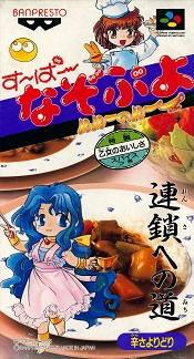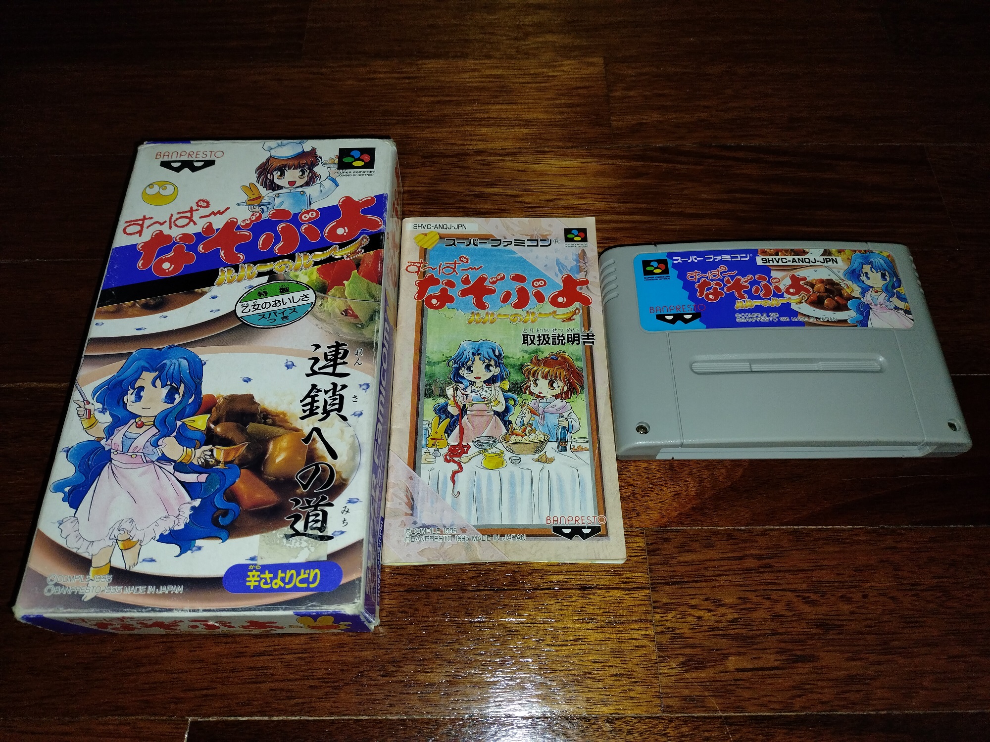 Um dos meus vícios dos últimos tempos tem sido este Puyo Puyo. A série Nazo Puyo é uma subsérie dos Puyo Puyo, puzzle games bastante viciantes onde tipicamente temos de juntar uma série de Puyos coloridos para os fazer desaparecer. Esta subsérie é inteiramente baseada em desafios que temos de resolver, ou seja, com o ecrã já previamente preenchido com alguns Puyos e um número limitado de movimentos teremos de cumprir uma série de objectivos. Os Nazo Puyo são tipicamente exclusivos japoneses e começaram na Game Gear, com o conteúdo desse primeiro jogo a estar também incluído no puzzle mode do Dr. Robotnik’s Mean Bean Machine da GG/MS. Várias sequelas foram sendo lançadas para a portátil da Sega até que, em 1995, a Compile, em conjunto com a Banpresto lança este primeiro Super Nazo Puyo, para a Super Famicom, exclusivamente no Japão. Existe no entanto um patch de tradução feito por fãs, pelo que acabei por o experimentar! Este meu exemplar custou-me cerca de 10€ e foi comprado na loja Mr. Zombie algures em Janeiro deste ano.