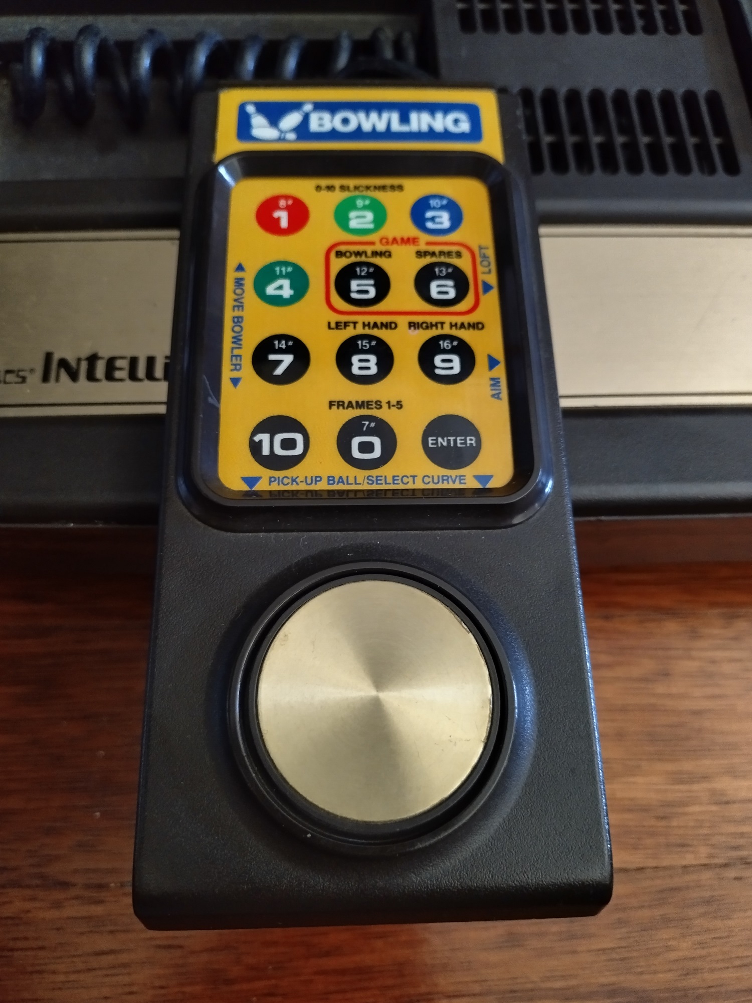 Ora este jogo usa todos os botões que o comando da Intellivision possui. Para além do disco e dos botões numéricos, o jogo utiliza também os seus quatro botões laterais. Mas vamos por partes. Mal comecemos o jogo este pergunta-nos que tipo de partida queremos, se bowling ou spares, algo que é seleccionado com os botões 5 ou 6. Em seguida devemos introduzir o número de jogadores (1 a 4, através dos botões respectivos) e posteriormente o tipo de pavimento (essencialmente o nível de dificuldade de 0 a 10, com os botões numéricos respectivos). Segue-se o peso da bola que queremos usar, também através dos botões numéricos e por fim se o jogador é esquerdino ou destro (botões 8 e 9 respectivamente). Depois de escolher todas estas opções que seria muito mais fácil fazer com um d-pad e um único botão facial, lá somos finalmente largados na partida. Basicamente todos estes botões numéricos são apenas utilizados nesta fase inicial de escolha do tipo de jogo e restantes parâmetros. Durante as partidas em si deveremos utilizar os outros botões, sendo que a única excepção é o botão 0 que nos permite ver o restante da pontuação.