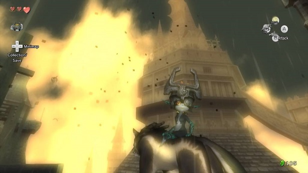 Quando estamos na forma de lobo, Midna materializa-se e pode-nos ajudar tanto no combate como na exploração