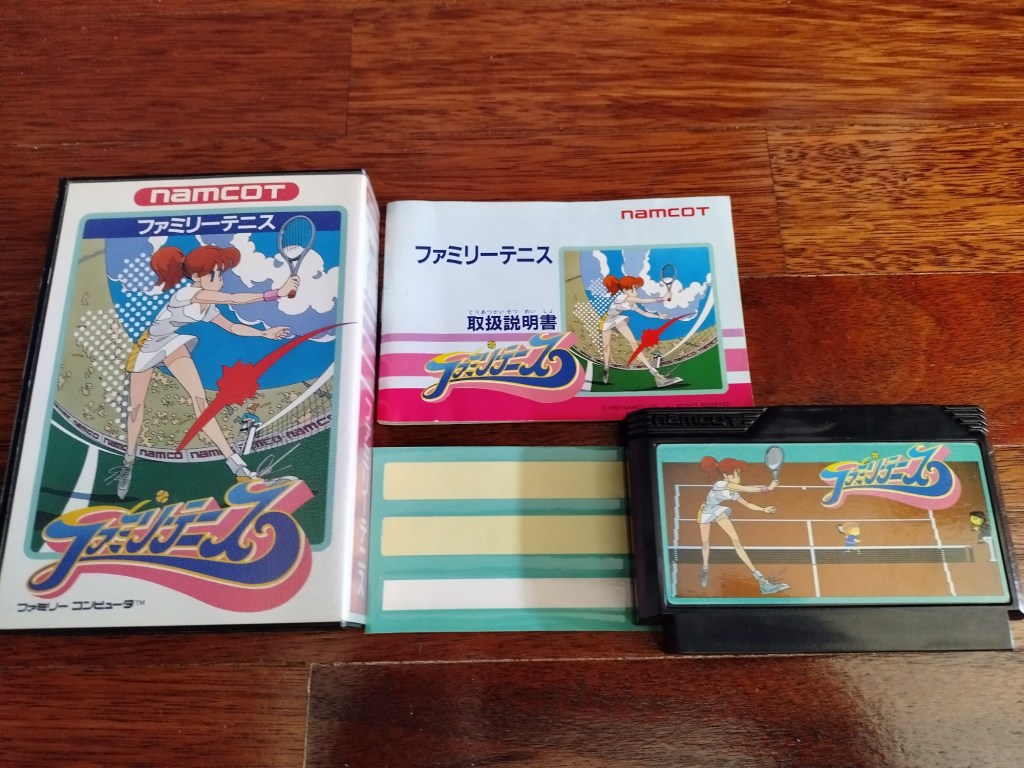 Vamos a mais uma super rapidinha que ultimamente o trabalho tem sido muito e o pouco tempo livre tem sido gasto a jogar um outro jogo que espero terminar na próxima semana. Entretanto lá deu também para jogar umas partidas deste Family Tennis, um jogo de ténis produzido pela Namco e lançado em 1987. Tal como o Family Circuit que já cá trouxe no passado, é ainda uma simulação algo simples do desporto. O meu exemplar foi comprado na loja Mr. Zombie algures em Janeiro deste ano por cerca de 8€ se a memória não me falha.