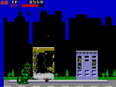 Continuando pelas rapidinhas vamos agora ficar com um clássico arcade dos anos 80 que recebeu conversões para inúmeros sistemas, de entre os quais esta versão da Master System. O objectivo deste jogo era simples: nós encarnamos num humano transformado num monstro gigante e teremos de destruir toda uma série de cidades norte-americanas. A versão arcade inclusivamente suportava até 3 jogadores em simultâneo, pelo que acredito que até fosse bem divertida de se jogar. O meu exemplar foi comprado a um amigo meu algures no passado mês de Abril por 5€.