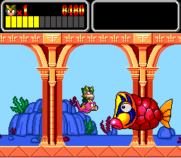 A jogabilidade é relativamente simples, com os botões faciais da PC Engine a servirem para saltar e atacar, sendo que quanto mais tempo pressionarmos o botão de salto, mais alto saltamos. O select é usado para alternar de arma e apesar de começarmos com uma espada, ao pressionar esse botão apercebemo-nos que afinal temos um arsenal considerável à nossa disposição. Para além da espada (que é também útil para destruir projécteis inimigos), temos também shurikens, explosivos e uma foice com corrente. Todas estas armas possuem vantagens e desvantagens entre si e podemos inclsusivamente direccionar os ataques enquanto as usamos. Claro que não podiam faltar power ups, que são largados por uns inimigos vermelhos cintilantes após serem derrotados. Os itens de cor vermelha melhoram as nossas armas, com a espada a ter um maior alcance, as shurikens passarem a ser disparadas às 3 em simultâneo, as granadas também podem ser atiradas sucessivamente e a foice com a corrente passa a ter a possibilidade de executarmos um ataque giratório, ou seja, e depois de a usarmos mantivermos o botão o botão de ataque pressionado, com o direccional podemos rodá-la e limpar uns quantos inimigos em simultâneo. Os itens azuis invocam uma sombra invencível que replica os nossos movimentos, duplicando assim o nosso poder de ataque (com até um máximo de duas sombras), os amarelos dão-nos um escudo e os roxos causam dano em todos os inimigos no ecrã durante breves segundos.