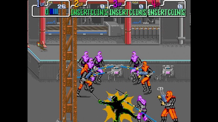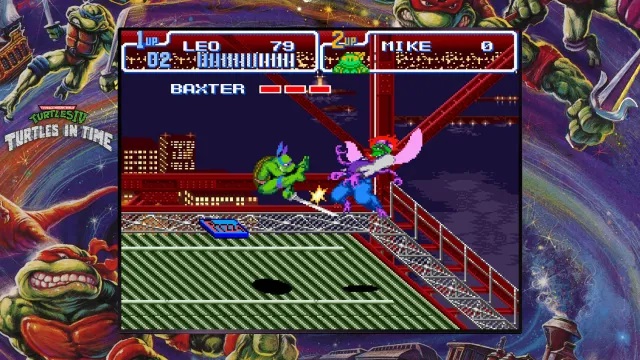 Segue-se o Turtles in Time, o segundo jogo arcade presente nesta compilação, lançado originalmente em 1991. É um beat ‘em up absolutamente fantástico e com uma jogabilidade melhorada perante o seu antecessor, até porque temos muitos mais golpes distintos que podemos executar. É também um jogo que pode ser jogado com um máximo de 4 jogadores em simultâneo e deve ter sido absolutamente incrível ser jogado com amigos numa arcade, até porque se jogado sozinho isto come imensos créditos. Gráficos e som incrível, uma boa variedade de níveis (até porque como o nome indica o jogo envolve viagens no tempo), um excelente jogo. Este Turtles in Time acabou mais tarde por ser relançado para a Super Nintendo, que é também uma conversão bem interessante. Graficamente fica uns furos abaixo do original como seria de esperar, mas não deixa de ser bem competente nesse departamento e traz ainda uns quantos extras. Como seria de esperar essa versão está também aqui representada, pelo que vos convido a ler esse artigo para mais detalhes.