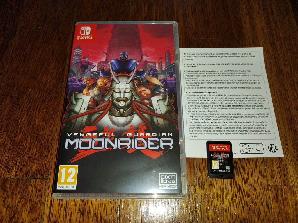 Vamos voltar à Nintendo Switch para mais um indie que teve direito a um lançamento físico neste sistema. Produzido pela Joymasher, que já nos trouxe vários outros videojogos inspirados em clássicos retro como Oniken (que tenho cá para jogar um dia destes), Odallus e Blazing Chrome, este Vengeful Guardian: Moonrider é um belo tributo aos melhores jogos de acção da era 16bit. Referências a títulos como Shinobi, Mega Man X ou Turrican são mais que evidentes! O que só descobri há pouco é que a Joymasher é um estúdio brasileiro, pelo que lhes devo dizer que estão de parabéns pelo óptimo trabalho! O meu exemplar foi comprado numa loja online algures no passado mês de Julho por cerca de 30€.