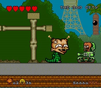 Já no que diz respeito aos gráficos, esta mudança para a Super Nintendo foi também algo que revitalizou bastante a série. Para além dos seus gráficos super coloridos e níveis bem detalhados, bem como todas aquelas expressões cómicas que a série Bonk já nos habituou, os próprios níveis são agora também bem originais e distintos entre si. Temos na mesma todas aquelas influências da pré história, mas misturadas com cenários urbanos modernos (temos níveis na Torre Eiffel e num avião comercial, por exemplo), passando por níveis na Lua ou mesmo em pleno espaço onde culminamos numa espécie de Death Star. Os bosses são grandes, bem detalhados, coloridos e animados e o jogo como um todo está repleto de parallax scrolling e de todos aqueles bonitos efeitos que a SNES é capaz de fazer como rotação e escalamento de sprites. Até as transições entre mundos estão muito bem feitas e é fácil ver o quão a série beneficiou em transitar para a Super Nintendo. A nível de som, nada de especial a apontar, as músicas são bastante agradáveis e adequam-se perfeitamente às capacidades do chip de som da consola da Nintendo.