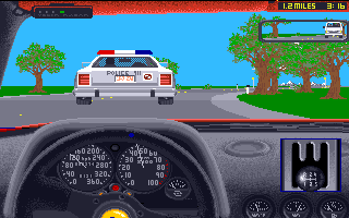 Mas vamos analisar a jogabilidade um pouco mais a fundo: aqui dispomos de dois modos de jogo, um contra relógio (onde obviamente teremos de bater cada circuito dentro de um tempo limite) ou contra um rival, que irá utilizar o carro que nós não escolhermos. Depois lá poderemos escolher qual dos circuitos queremos competir, bem como o nível de dificuldade no geral, cuja escolha influencia o facto de usarmos mudanças automáticas ou não, assim como qual será a velocidade máxima do nosso carro, do rival, da polícia e o próprio trânsito também. Depois lá somos então largados na corrida propriamente dita onde o objectivo será o de vencer o tempo do relógio ou chegarmos ao final primeiro que o nosso rival. No entanto este jogo tem também um certo quê de simulador, pois teremos de ter atenção aos níveis de combustível bem como a temperatura do motor, particularmente para quem jogar com mudanças manuais, já para não falar dos excessos de velocidade que poderão ser punidos pela polícia, caso esta nos apanhe em excesso de velocidade, nos persiga e nos apanhe.