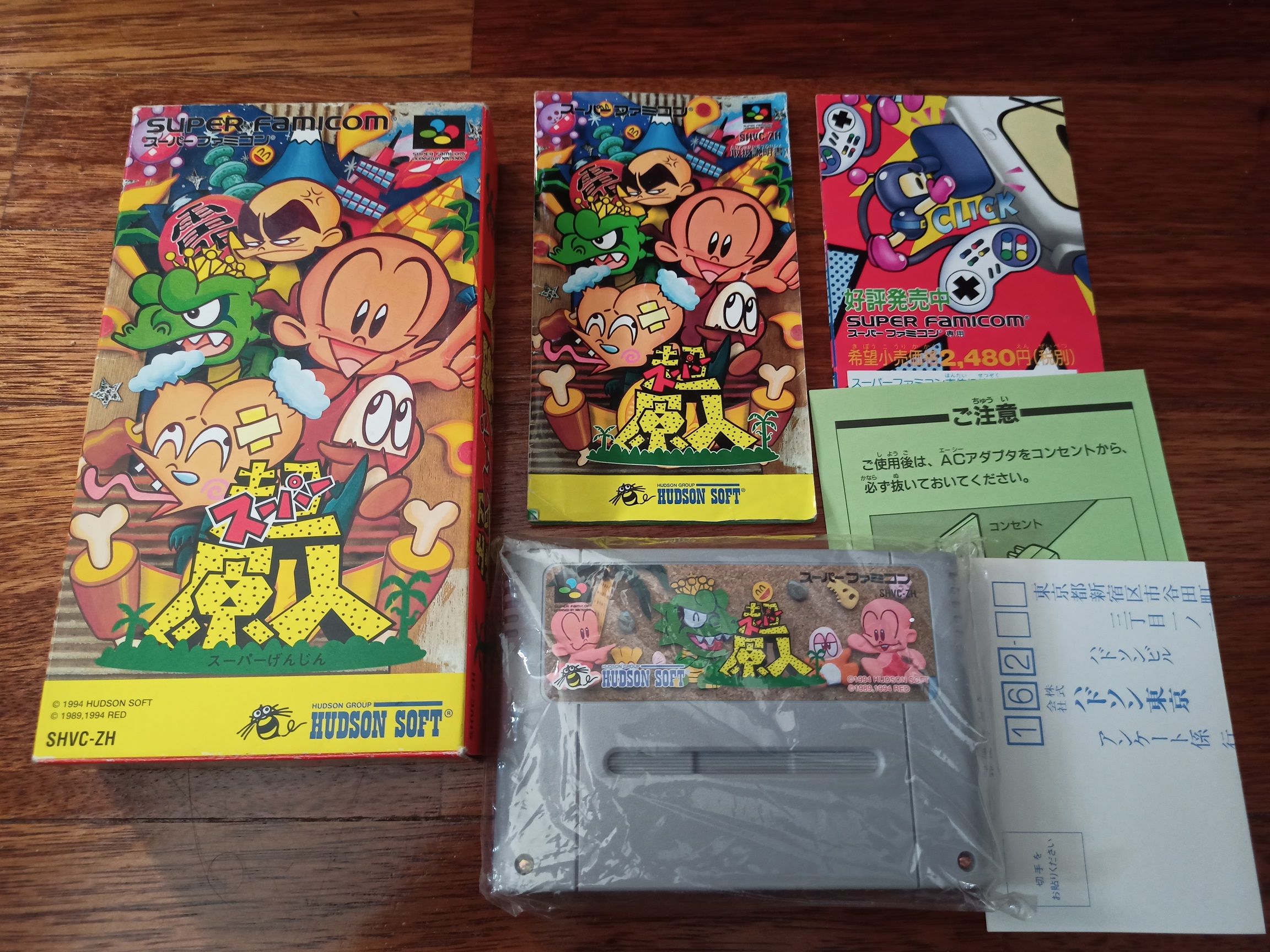Conhecido cá como Super Bonk, este jogo é na verdade o Bonk’s Adventure 4, lançado originalmente algures em 1994. Por essa altura a Turbografx-16/Turbo Duo já há muito que estava moribunda no mercado norte americano e no mercado japonês a diferença para a Super Nintendo também já era bastante considerável. Então a Hudson e a Red decidiram mudar as agulhas e criar um novo Bonk para o sistema de 16bit da Nintendo. E ainda bem que o fizeram, pois apesar de achar o Bonk 3 um bom jogo de plataformas, a sua fórmula começava a ficar gasta e este novo jogo para a SNES acaba por ser uma lufada de ar fresco! O meu exemplar foi comprado algures em Setembro a um particular, tendo-me custado cerca de 40€.