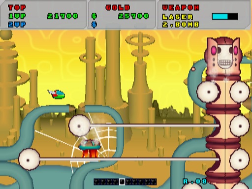 Segue-se então o Fantasy Zone, que até é um lançamento interessante desta compilação. Começando pelos visuais, em vez das sprites temos na mesma um jogo com jogabilidade 2D, mas com polígonos em cel-shading e o efeito final até não fica muito longe das cores vibrantes do lançamento original. As músicas são também similares às do lançamento original e temos na mesma algumas melodias memoráveis. Já a jogabilidade mantém-se também muito similar à do lançamento original e dispomos aqui de vários modos de jogo. O arcade é uma conversão fiel dessa versão, já o modo normal inclui também alguns níveis adicionais, que precisam no entanto de serem desbloqueados no challenge mode. Neste último somos levados a completar vários níveis e amealhar o máximo de dinheiro possível, que pode ser gasto em comprar os tais novos níveis e itens que poderão ser jogados no normal mode. Existe também uma galeria de imagens que poderão ser desbloqueadas ao jogar este modo. Ainda voltando ao normal mode, no final de cada boss temos um pequeno segmento jogado numa perspectiva 3D tipo Space Harrier onde perseguimos o boss e amealhamos mais dinheiro extra. Portanto esta versão do Fantasy Zone até que achei bem conseguida!