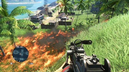 Este é então um first person shooter em open world e que também me faz lembrar o Assassin’s Creed em várias instâncias. Por exemplo, explorando o mapa poderemos ver torres de rádio que poderemos escalar e libertar, onde poderemos fazer o “sincronismo” com a área à nossa volta e assim popular o mapa com mais pontos de interesse. Os pontos de interesse mais importantes são bases inimigas que poderemos tentar conquistar, de preferência de uma maneira mais furtiva e ir desactivando os seus alarmes. Uma vez conquistados, esses pontos servem de base que poderemos utilizar para fast travel, desbloqueiam toda uma série de missões secundárias e reduzem fortemente a presença de inimigos nas suas imediações na ilha. Também ao explorar iremos dar de caras com muita vida selvagem, sejam criaturas inofensivas como veados ou porcos, outras herbívoras mas bastante territoriais como búfalos e claro, predadores como leopardos, dragões de komodo, tigres entre muitos outros.