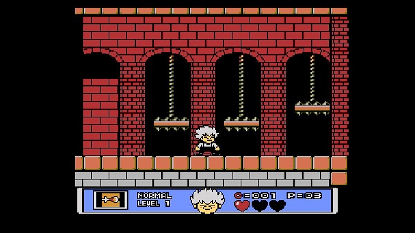 Ainda na NES, embora esteja no final da lista dos jogos disponíveis, temos também o Kid Dracula. Lançado originalmente no Japão em 1990, este foi um jogo que se manteve exclusivo naquele território precisamente até ao lançamento desta compilação, onde todo o seu texto foi traduzido para inglês. Aqui controlamos um pequeno Drácula e o jogo possui uma temática bem mais alegre e claro, apesar de ter alguns picos de dificuldade (principalmente nos últimos níveis), é bem mais fácil que os Castlevania normais, até porque temos bem mais controlo nos saltos, embora quando sofremos dano também vamos um pouco para trás, o que pode arruinar algum salto que tenhamos planeado.