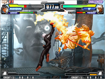 A nível audiovisual este é um jogo que me agrada mais que o KOF Neowave, particularmente as suas arenas. Aqui estas estão bem detalhadas, bem mais polidas do que o hardware da Neo Geo poderia fazer e mesmo assim mantém um feeling mais 2D, em linha com os jogos de luta tradicionais da SNK. Mas claro, continuo a preferir de longe uns visuais mais pixel art, mas isso é uma mera opção pessoal. E isso é o que acontece com as sprites dos lutadores, que são extremamente bem animadas e detalhadas como é habitual na SNK. No entanto, as mesmas continuam a ter um aspecto muito Neo Geo (o que é bom!) mas tal continua a destoar um pouco com os cenários mais realistas. Pontos bónus no entanto para todas as outras personagens SNK que vão surgindo em plano de fundo! Já a nível de som, nada de especial a apontar aos efeitos gráficos e vozes digitalizadas, que continuam óptimos. A banda sonora também me soou de forma agradável enquanto joguei, possuindo uma boa variedade de estilos.