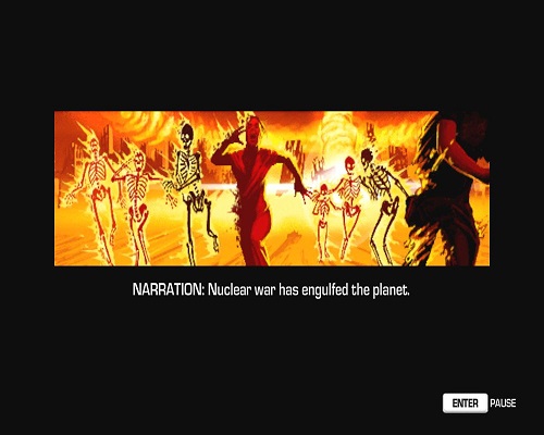 A história deste Blood Dragon nada tem a ver com o Far Cry 3. Pensem neste jogo como uma paródia a filmes de acção e ficção científica dos anos 80, pois este é mesmo uma espécie de visão futurista digna de um filme de acção dos anos 80. Basicamente somos levados ao “futuro” ano de 2007, após uma guerra nuclear que dizimou o planeta. Controlamos um cyborg super soldado do exército americano, Rex “Power” Colt que, juntamente com o seu companheiro T.T. “Spider” Brown se infiltram numa ilha controlada por um outro super soldado (Coronel Sloan) que se havia revoltado contra a sua nação. As coisas não correm bem e eventualmente lá somos ajudados pela assistente do vilão, que não gosta dos planos de destruição do mundo que Sloan tem em mente.