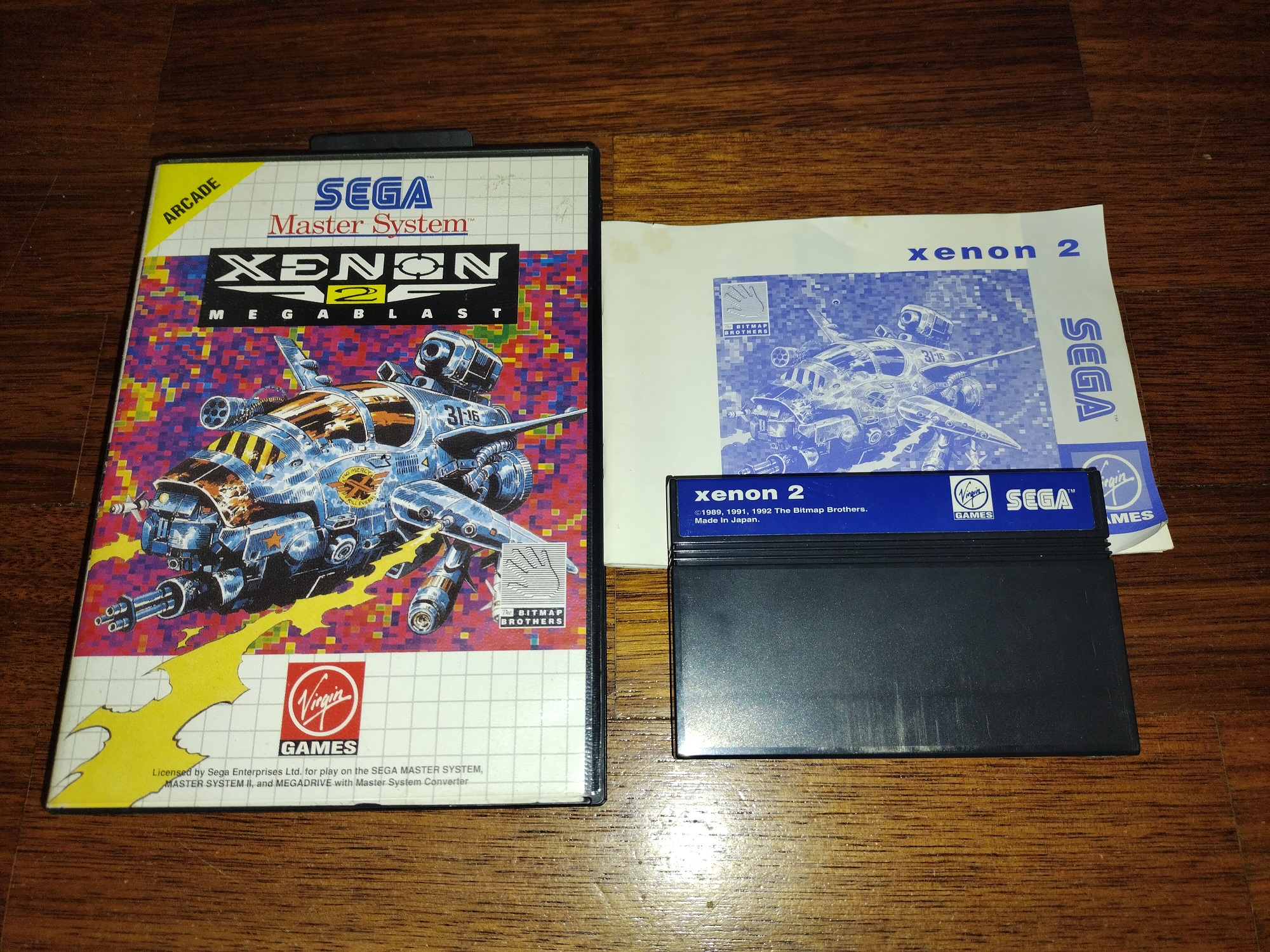 Vamos voltar à Master System e às rapidinhas para esta adaptação do Xenon 2, um jogo produzido originalmente pela saudosa Bitmap Brothers e que havia sido lançado para computadores como o Commodore Amiga ou Atari ST. Nessas versões é um shmup frenético e com uma banda sonora bem conhecida! Versões para outros sistemas foram também desenvolvidas, incluindo as consolas da Sega através da Virgin. O meu exemplar veio directamente do UK, tendo sido lá comprado numa CeX por um familiar de um amigo meu, que teve a gentileza de mo trazer quando voltou a Portugal na altura do Natal e ano novo. Custou 6libras.