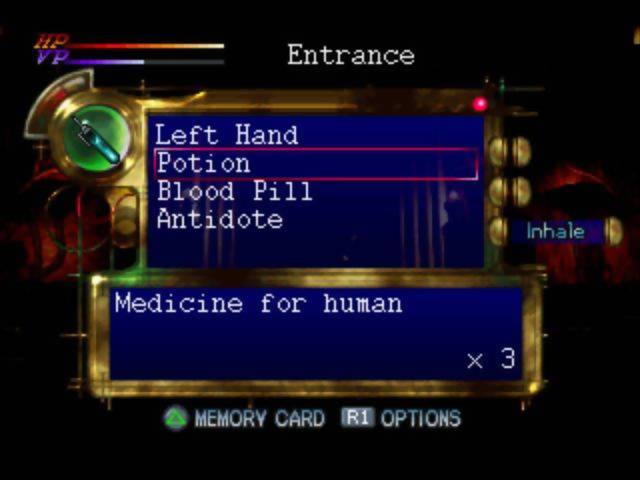 Todos os itens/equipamento/feitiços que iremos desbloquear surgem na forma destas cartas. E se for o primeiro do tipo, Kain irá descrevê-los para nós. Este item em concreto serve para regenerar a nossa barra de sangue/vida.