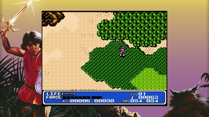 O Crystalis é para mim um dos maiores destaques desta compilação, visto ser um dos poucos exclusivos de NES que a SNK produziu. É também um jogo de 1990, lançado originalmente no Japão meras semanas antes da Neo Geo, plataforma sobre a qual a SNK se passou a focar inteiramente desde então. É também o jogo mais recente desta compilação. E este Crystalis é nada mais nada menos que um RPG de acção que até é bastante competente no que faz. Decorre num mundo pós-apocalíptico, embora já deva ter passado tanto tempo que os vestígios da “nossa” civilização já nem são visíveis. Nós encarnamos numa personagem anónima, um suposto cientista que acorda do seu “crio-sono” 100 anos após a tragédia e à medida que vamos explorando, vamo-nos apercebendo que um vilão anseia novamente dominar o mundo. A nível de mecânicas este é um RPG de acção onde vamos ganhando experiência e dinheiro à medida que vamos derrotando inimigos. A primeira faz com que subamos de nível e assim possamos ficar mais fortes, enquanto o dinheiro serve para ser gasto em lojas, sejam em itens como equipamento diverso. As espadas que vamos coleccionando dão dano elementar e adquirindo certos itens mágicos permitem-nos também desencadear alguns ataques mágicos capazes de causar bem mais dano, bem como abrir certas passagens no mapa. Os controlos são simples com um botão para atacar e outro para utilizar algum item que tenhamos eventualmente equipado. É um jogo bastante competente nas suas mecânicas, gráficos e possui uma banda sonora bastante boa para um jogo 8bit. A única coisa que me chateou um pouco é o facto de existirem inimigos com resistência total a certos elementos, o que nos obriga, em certas dungeons, a estar constantemente a mudar de espada.