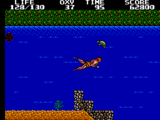 Segue-se o SAR: Search and Rescue, mais um título de 1990 e mais um twin stick shooter que até achei bastante interessante. Fez-me lembrar o Alien Syndrome da Sega, embora muito mais sangrento e com criaturas bem mais diversas que iremos enfrentar, como aliens, zombies ou máquinas. No entanto ao contrário do que o seu nome indica, não andamos aqui a salvar ninguém… parece que se ficaram pela procura. O objectivo é então o de ir percorrendo uma série de níveis, enfrentando inimigos cada vez mais agressivos e numerosos, com bosses à nossa espera no final de cada área. Os controlos são simples, com um botão para disparar e outro para nos desviarmos, sendo que teremos à nossa disposição várias armas diferentes para coleccionar. Mais uma boa surpresa desta compilação, é um jogo que desconhecia completamente.