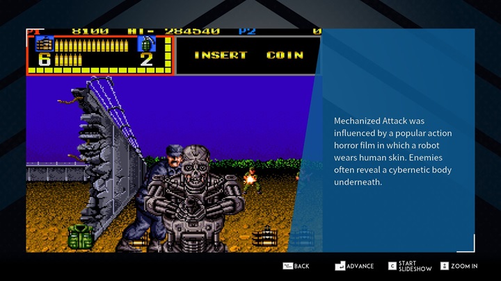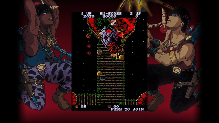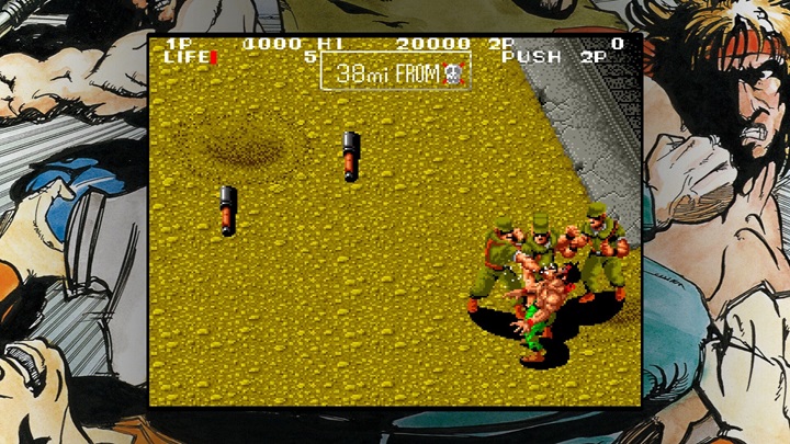 Depois viajamos novamente para 1987 para este Guerilla War e escrever sobre este jogo antes do Ikari Warriors é uma injustiça pois foi seguramente influenciado pelo mesmo. É então um shooter com uma perspectiva vista de cima onde sozinhos (ou com um amigo) teremos um autêntico exército para combater, assim como resgatar uns quantos reféns para pontos de bónus adicionais (ou subtraídos caso os matemos por acidente). Tal como o Ikari Warriors este é um twin stick shooter, na medida em que um dos analógicos controla o movimento enquanto o outro controla a direcção de fogo. É um jogo curto, porém repleto de acção e violência e até podemos conduzir tanques! Um detalhe curioso sobre este jogo é que o mesmo é conhecido como Guevara no seu lançamento original nipónico e controlamos nada mais nada menos que Che Guevara ou Fidel Castro. Compreende-se o porquê do nome do jogo ter sido alterado no território americano. De resto a versão NES está aqui também incluída e esta, ao contrário do Ikari Warriors, até que é uma conversão bem competente no sistema da Nintendo!