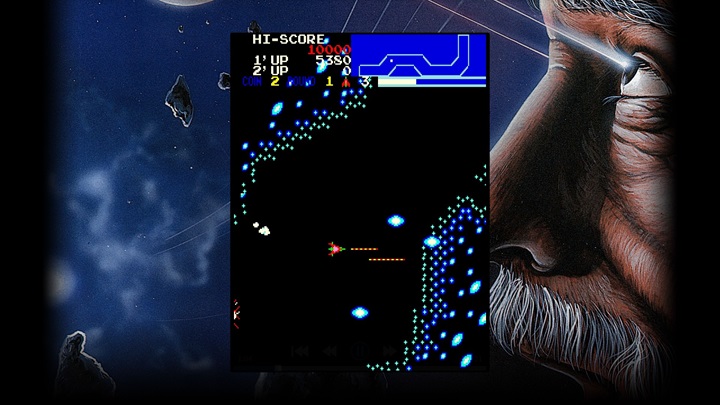 O Ozma Wars é o jogo mais antigo desta compilação, tendo sido lançado em 1979! Como muitos jogos arcade dessa época, não existe qualquer final, pelo que o objectivo é mesmo o de sobreviver o máximo que conseguirmos e fazer a melhor pontuação possível. E este é um shooter como muitos jogos o eram depois do sucesso do Space Invaders da Taito. Mas os inimigos são bem mais móveis e dinâmicos. A nossa vida é representada por um número com energia que vai diminuindo constantemente e ainda mais de cada vez que somos atingidos. Ocasionalmente lá aparece a nossa nave mãe para nos reabastecer de energia. E é isto, um jogo simples nas suas mecânicas.