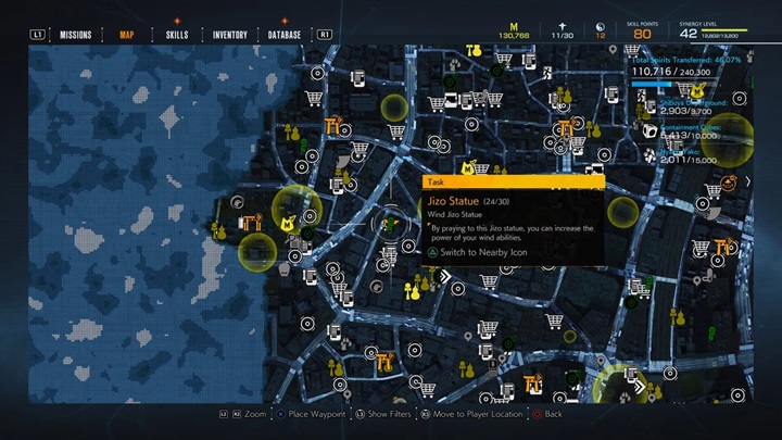 Os combates e missões recompensam-nos com experiência que por sua vez nos vai fazendo subir de nível como num RPG. Sempre que isso acontece ganhamos também skill points que poderemos posteriormente utilizar em várias skills distintas, tanto de combate, como exploração. Coleccionar certos objectos ou capturar yokai (criaturas místicas do folclore nipónico) podem-nos também trazer skill points adicionais ou pedras magatama, que por sua vez nos podem desbloquear certas skills da árvore. Ou seja, algum do conteúdo opcional e coleccionável é mesmo necessário para que consigamos eventualmente evoluir a nossa personagem ao máximo. Os coleccionáveis mais abundantes são espíritos de pessoas que podem também ser capturados e libertados em cabines telefónicas (não me perguntem como é que isso funcionaria no mundo real) e são também uma óptima maneira de obter experiência e dinheiro sempre que o fizermos. Ora eu não completei o jogo a 100% embora tenha apanhado todos os coleccionáveis “importantes” e mesmo assim gastei mais de 40 horas neste jogo, o que não estava mesmo à espera.