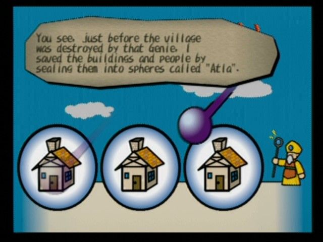 O jogo leva-nos então a encarnar no jovem Toan, habitante da aldeia de Norune que havia sido destruída por um poderoso e maléfico génio, que por sua vez havia sido libertado por um grande império distante que ambicionava controlar o mundo. No entanto, Toan encontra o Fairy King, que lhe diz ter poderes para restaurar a sua aldeia e os seus habitantes, mas para isso teremos de recolher toda uma série de esferas mágicas espalhadas numa caverna ao lado da sua aldeia. E iremos ter de fazer o mesmo nas aldeias/cidades vizinhas, o que nos irá também fazer avançar na narrativa e eventualmente lá teremos de enfrentar o tal génio.