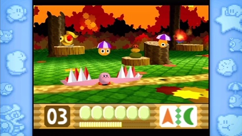 De resto, o que mais traz esta compilação? Temos um jogo inteiramente novo para experimentar, chamado de New Challenge Stages. São essencialmente um conjunto de desafios onde a nossa performance é avaliada pelo tempo que demoramos a completar cada nível, inimigos derrotados, dano sofrido, moedas coleccionadas, entre outros. Os níveis em si parecem ser baseados no jogo do Kirby da Wii que precedeu este, o Kirby’s Adventure Wii (ou Kirby’s Return to Dream Land Deluxe na sua versão Switch), que por sua vez me parece fantástico. Também presente no disco temos outros extras como uma espécie de museu interactivo do Kirby, com detalhes (scans das caixas e vídeos de gameplay e informativos) de todos os jogos Kirby até à data, assim como 3 episódios de uma série de animação que não fazia ideia da sua existência. Físicamente o jogo traz outros extras, como um CD com banda sonora da série e um livro de arte de 45 páginas, esse último infelizmente não tenho. De resto, uma nota apenas para a emulação dos jogos aqui jogáveis: apesar de a emulação em si ser competente, não traz nenhuma daquelas funcionalidades óptimas que vemos actualmente em compilações deste género de jogos mais antigos. Save states seriam bem-vindos! Na verdade estes até existem em alguns jogos, mas são apenas temporários, usados quando saímos do jogo e apagados uma vez que lá entremos novamente. Outras funcionalidades como o suporte a Super Game Boy do Kirby’s Dream Land 2 seriam também interessantes e confesso que não se perdia nada se tivessem incluído mais alguns desses jogos mais antigos de GB e SNES na compilação também.
