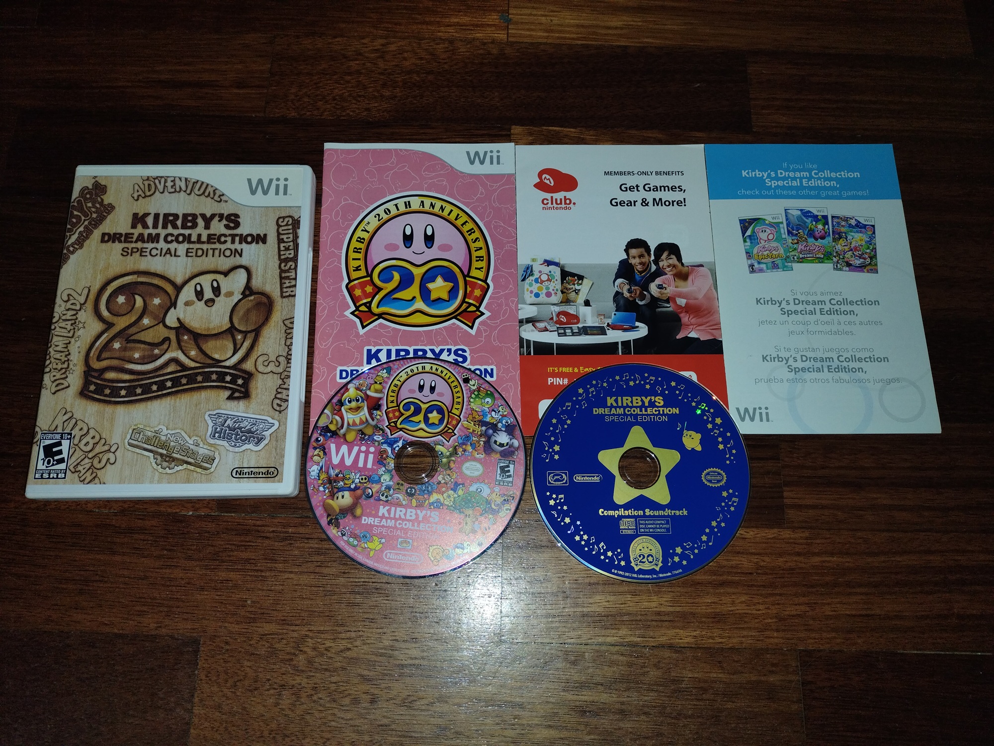 Tempo de voltar à Nintendo Wii para um lançamento muito interessante e que infelizmente não chegou a ver a luz do dia no nosso território europeu. Este Kirby’s Dream Collection é portanto uma compilação que celebra os 20 anos da série Kirby, incluindo “todos” os jogos Kirby das gerações 8, 16bit e também o Kirby 64. Supostamente todos os Kirby considerados como entradas principais até à Nintendo 64, pelo que jogos como Kirby’s Pinball Land ou Kirby’s Dream Course ficaram de fora. Para além disso, inclui também alguns extras que irei detalhar mais à frente. Eu sei que a série Kirby sempre foi algo secundária para a Nintendo, mas é difícil conceber uma razão pela qual este lançamento nunca saiu em solo europeu. Talvez por se aproximar do lançamento da WiiU? Talvez por um dos jogos aqui incluídos nunca ter saído na Europa antes? Se bem que para mim esse seria um motivo adicional para a compilação ter sido lançada por cá. O meu exemplar foi comprado aquando de uma viagem que fiz a Nova Iorque em 2017, numa das várias GameStop que por lá visitei. Já não me recordo ao certo quanto custou, mas foi seguramente barato. Infelizmente no entanto não está completo, faltando-lhe a sleeve exterior de cartão e o livro de arte.