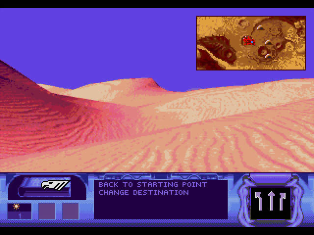 Então este Dune da Cryo é um misto de um jogo de aventura com vários elementos de estratégia. A parte de aventura tem a ver com a forma como a narrativa se vai desenrolando e a interface que o jogo utiliza para nos fazer avançar a narrativa. Basicamente faz-me lembrar aqueles jogos de aventura gráfica com uma interface por menus, onde toda a exploração é feita na primeira pessoa e podemos escolher que acção queremos tomar com base num menu: quais as pessoas que queremos falar e o que lhes queremos dizer. O jogo permite-nos também pedirmos a NPCs que nos acompanhem ou fiquem nalgum sítio a fazer alguma coisa específica, podendo ter a companhia de um máximo de 2 NPCs de cada vez e a história, particularmente no início, vai ter muito desta componente de aventura: explorar Arrakis e as povoações à nossa volta e convencer os seus líderes a juntarem-se à nossa causa. Mas o nosso objectivo primordial é o de controlar a extracção de spice e enviar carregamentos recorrentes para o imperador, que nos pede volumes cada vez maiores. Se falharmos alguma destas encomendas, é game over. E é aí que entra toda a parte estratégica.