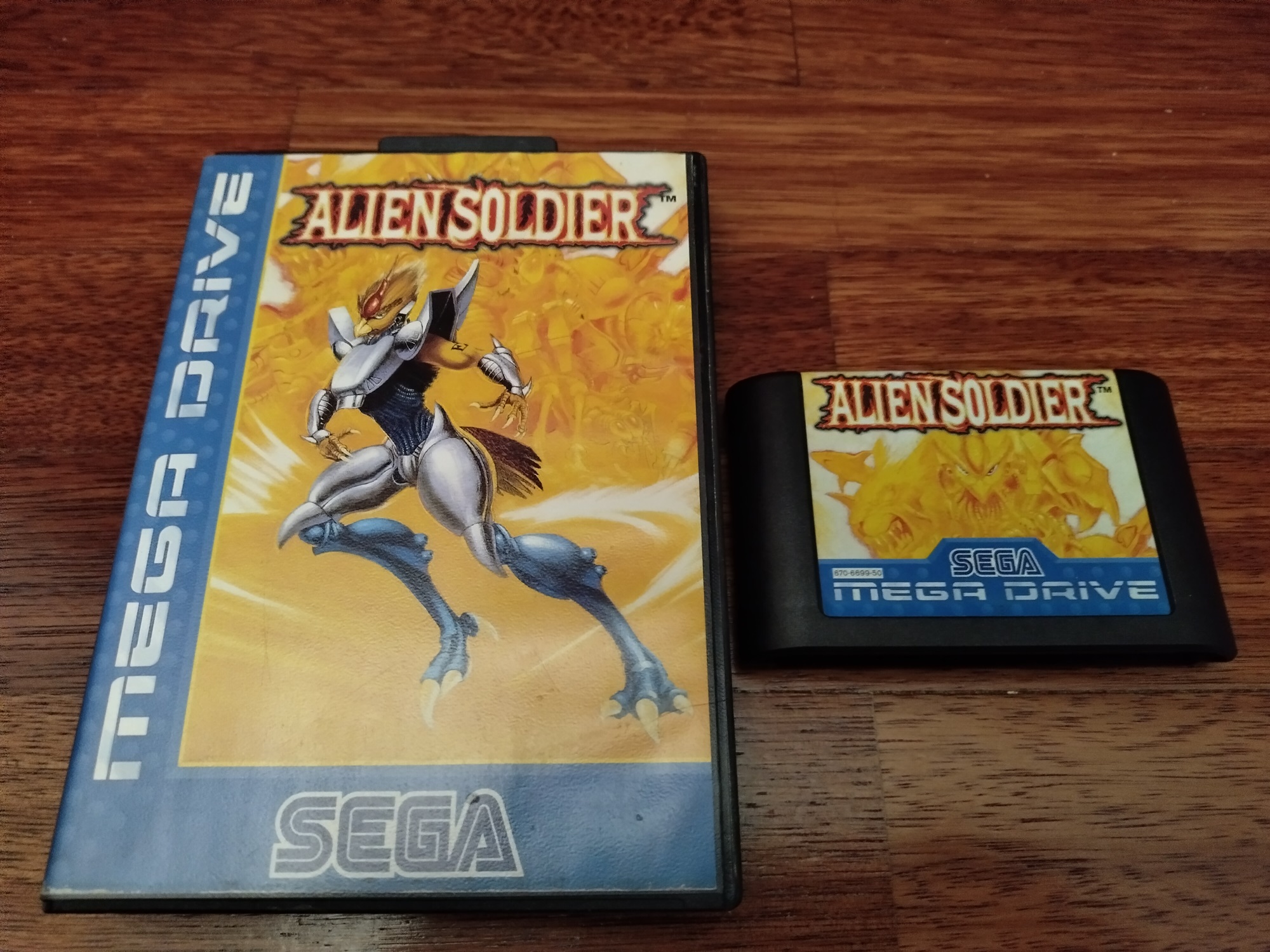 Tempo de finalmente voltar para a Mega Drive e ficarmos aqui com um grande jogo da Treasure, que por sua vez já havia produzido uns quantos jogos de acção bastante bons para a consola da Sega, como é o caso dos clássicos Gunstar Heroes ou Dynamite Headdy. Este Alien Soldier tem no entanto uma outra peculiaridade, visto que não chegou a receber nenhum lançamento físico nos Estados Unidos, mas sim apenas através do serviço Sega Channel como um jogo descarregável. O mesmo aconteceu com um certo lançamento do Mega Man… e como este é um excelente jogo de acção da Treasure, naturalmente que é um jogo bastante coleccionável, pelo que as cópias japonesas e também europeias têm vindo a ser alvo de importações massivas por parte de coleccionadores norte-americanos. Ou seja, não é um jogo barato e o meu exemplar também não o foi, embora tenha tido a vantagem de utilizar alguns cupões para atenuar bastante o seu preço final.