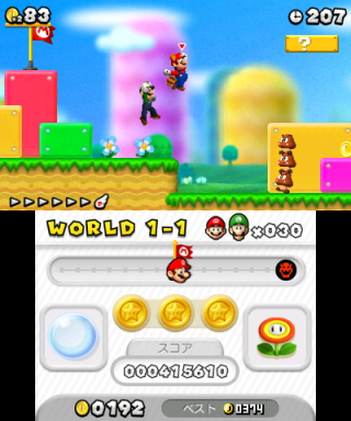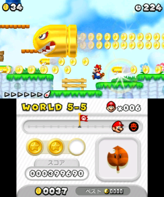 Tal como nos anteriores New Super Mario Bros., também aqui existem as habituais super moedas escondidas em cada nível. Estas podem depois ser utilizadas para abrir novos caminhos no mapa, que tanto podem dar acesso a diferentes casas do Toad, onde é possível obter power-ups ou vidas extra, como desbloquear níveis secretos. Esses níveis secretos também podem ser descobertos ao explorar cuidadosamente determinadas áreas, em busca de saídas alternativas. De resto, para além dos seis mundos principais, é ainda possível desbloquear três mundos adicionais. Este título inclui também modos cooperativos e um modo de jogo extra intitulado Coin Rush, uma espécie de desafio contra-relógio em que o objectivo é apanhar o maior número de moedas possível. Confesso que não os cheguei a experimentar, mas todo este conteúdo adicional é sempre bem-vindo para prolongar a longevidade do jogo.