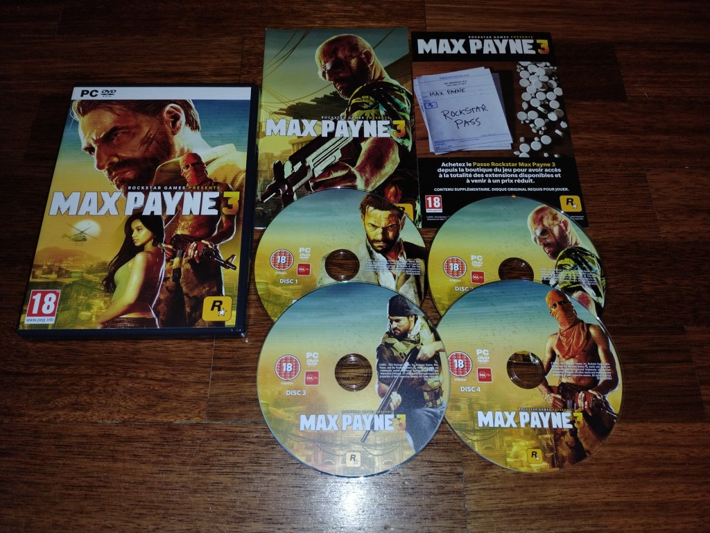 O Max Payne original é, possivelmente, um dos meus videojogos preferidos e um daqueles a que associo um carinho especial, por toda a nostalgia que me traz. Lembro-me perfeitamente de, algures em 1999, ter visto pela primeira vez um trailer do jogo no saudoso programa Templo dos Jogos, com todos aqueles tiroteios em câmara lenta a deixarem-me deliciado! Desde essa altura que acompanhei de perto o seu desenvolvimento nos fóruns da 3D Realms, já que foi a editora norte-americana que o publicou. O que me havia passado completamente despercebido foi que, mais tarde, a 3D Realms vendeu os direitos da propriedade intelectual de Max Payne, o que levou a que a sua sequela, apesar de ainda ter sido desenvolvida pela Remedy, já tivesse sido publicada pela Rockstar. No caso deste Max Payne 3, quando o mesmo foi anunciado algures em 2011, tratava-se já de um jogo inteiramente desenvolvido pela Rockstar, o que me apanhou de surpresa, embora a Remedy tenha mantido um papel consultivo no processo. A impressão que o jogo me deixou inicialmente, com base nos trailers que vi, foi a de ser tão diferente do clima noir dos seus antecessores que isso acabou por diminuir a minha vontade de o jogar. Tinha já um exemplar na minha colecção para a PlayStation 3 há alguns anos, mas, tratando-se de um shooter exigente, a vantagem de se jogar com rato e teclado falou mais alto. Assim, algures em 2023, surgiu a oportunidade de adquirir a versão física para PC a um preço acessível, pelo que acabei por vender a versão PS3 e dedicar-me antes a esta, tendo agora finalmente chegado o momento de a jogar.