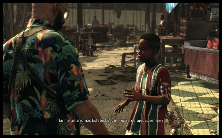 Mas é no ambiente do jogo que se notam, de facto, as maiores diferenças. As cores escuras e cinzentas, típicas dos ambientes de filmes noir, foram substituídas pelo clima solarengo da América Latina, seja em cenários urbanos, seja nas favelas, fábricas ou edifícios em ruínas. O contraste é acentuado, sem dúvida, mas Max Payne está mais cínico do que nunca, e os seus monólogos enriquecem, e de que maneira, a narrativa! ‘Tudo está perdoado, Rockstar’, fui pensando eu à medida que jogava e a trama se adensava. Depois, há toda a questão do ambiente brasileiro, e devo dizer que foi uma experiência curiosamente agradável ouvir constantemente insultos em português. Um detalhe interessante é que as legendas seguiam a língua dos diálogos: por norma activo sempre que possível legendas em inglês, e neste caso, quando alguém falava em português, as legendas apareciam também em português. Não reparei se existiria alguma opção para forçar todas as legendas a aparecerem em inglês, mas até preferi assim, visto que compreendo bem ambas as línguas. E já agora, pareceu-me que algumas das falas em PT-BR não foram ditas por nativos, notei aqui e ali um sotaque algo estranho. Os meus leitores e amigos brasileiros que me perdoem, pode ter sido apenas impressão minha, por não conhecer bem todas as nuances da língua nas diferentes regiões do Brasil.
