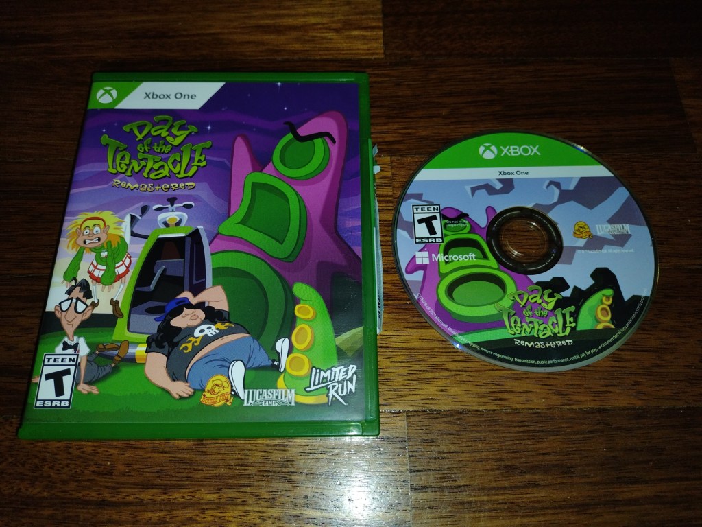 Na minha missão de jogar todas as aventuras gráficas da Lucasarts, chegou agora a vez do famoso Day of the Tentacle. É um jogo de que já ouvira falar bastante por parte de amigos que o adoram, pelo que as expectativas estavam altíssimas e posso desde já afirmar que não saíram, de todo, defraudadas. Os meus exemplares na colecção estão divididos em dois sistemas: por um lado, tenho a versão DOS incluída numa compilação chamada Tien Adventures, exclusiva do mercado neerlandês, que reúne dez jogos da Lucasarts; por outro lado, possuo também a versão remastered na Xbox One, em edição física lançada exclusivamente pela Limited Run Games. Tendo em conta que a versão DOS que possuo é a lançada originalmente em disquetes (e que, portanto, não possui voice acting), esta análise centrar-se-á na versão remasterizada.