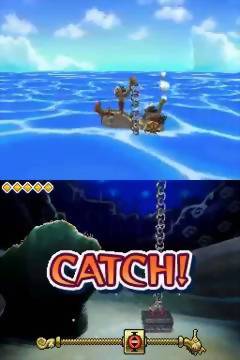 A exploração marítima volta a ser uma mecânica central, ainda que de forma simplificada. Já não é preciso controlar o vento, mas os controlos do barco também não me pareceram os mais agradáveis. Antes de zarpar, desenhamos no mapa a rota a seguir, que o barco percorre automaticamente. Temos no ecrã alguns ícones que representam comandos adicionais: parar ou arrancar o barco e saltar para desviar obstáculos. Tocando no ecrã permite-nos disparar o canhão na direcção pretendida, enquanto que arrastar a stylus pelo ecrã controla a câmara, mas mais uma vez a precisão nem sempre corresponde ao que se deseja. Em contrapartida, o jogo aproveita melhor outras funcionalidades da DS. Tirar notas nos mapas é algo que se revela mesmo necessário, seja para localizar tesouros ou decifrar pistas. Algumas portas e mecanismos exigem que desenhemos símbolos no ecrã, e o próprio teletransporte entre pontos do oceano é activado da mesma forma. É um uso criativo da consola que, ao contrário dos controlos, me pareceu bastante bem conseguido.