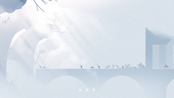 É, no entanto, pela componente audiovisual que Neva mais se destaca, tal como já acontecia com Gris. Ainda assim, o estilo artístico deste jogo é consideravelmente diferente do seu predecessor. Temos novamente um mundo fantasioso, repleto de criaturas estranhas, leis de física pouco convencionais e uma arquitectura muito distinta, mas existe aqui um foco muito maior em jogos de contraste e brilho. Isto torna alguns segmentos de platforming mais exigentes, pois nem sempre é fácil distinguir o que é plataforma do que não é. Alguns destes parâmetros podem ser ajustados nas opções do jogo, mas no meu caso foi também necessário mexer nos valores da própria televisão para encontrar um melhor equilíbrio entre brilho e contraste. A música é bastante agradável e calma na maior parte do tempo, e praticamente não existem vozes, apenas os chamamentos de Alba para Neva, muitas vezes respondidos com latidos.
