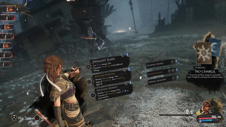 No que toca às mecânicas de jogo, estamos perante um RPG com combates por turnos, mas não aleatórios, já que os inimigos estão visíveis no ecrã e apenas entramos em combate quando entramos em contacto com os mesmos. Se conseguirmos pressionar o botão de ataque, R1, antes de o encontro começar, ganhamos vantagem no confronto, com os primeiros ataques a serem da nossa equipa. Durante os combates temos à disposição uma série de acções, como atacar, usar habilidades especiais ou magias, que consomem ability points, ou utilizar itens. Mais tarde vamos desbloqueando outros tipos de acções, como o free aim, que nos permite disparar projécteis mágicos a troco de ability points, ou os gradient attacks, habilidades especiais que são desbloqueadas em momentos específicos da aventura. Os combates utilizam também quick time events. Em muitos ataques ou habilidades temos de pressionar botões dentro de um timing específico apresentado no ecrã, enquanto que, quando somos atacados, podemos pressionar círculo para nos evadirmos, R1 para deflectir o golpe, podendo inclusive contra-atacar de forma automática, ou X para saltar, algo igualmente sinalizado por um ícone característico. Estas mecânicas, particularmente o parry, podem ser extremamente úteis, não só para quebrar certas defesas inimigas, como também para recuperar ability points para o turno seguinte.