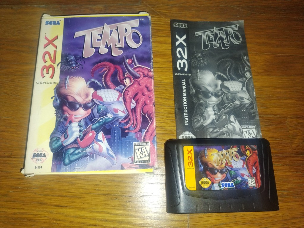 É altura de voltar à Sega 32X para explorar um dos videojogos que sempre achei mais interessantes da sua curta biblioteca. Apesar de já cá ter trazido no passado o Tempo Jr.., uma conversão deste mesmo jogo para a modesta Sega Game Gear, esta pequena série teve as suas origens na 32X, mas infelizmente este jogo nunca chegou ao território europeu. No mês passado decidi finalmente comprar um exemplar para a colecção e a melhor oportunidade que me surgiu foi na Vinted, em solo europeu, o que ajudou a minimizar portes de envio e taxas alfandegárias. Confesso que estive indeciso entre comprar a versão japonesa ou norte-americana e acabei por optar pela versão ocidental pela comodidade da língua inglesa. No entanto, essa versão é consideravelmente mais cara, pelo que acabei por escolher este exemplar que, apesar de completo, tem imenso sunfade na sua caixa de cartão. Em retrospectiva devia antes ter comprado a versão japonesa: teria custado o mesmo, estava num estado muito melhor, a arte da sua capa é francamente superior e o jogo possui muito pouco texto de qualquer das formas.