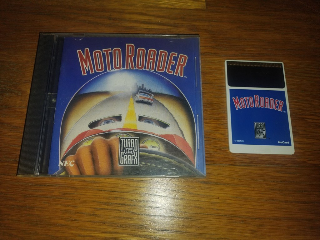 Vamos voltar à Turbografx-16 com um artigo que originalmente até planeava que fosse uma rapidinha, mas que na verdade até tem bastante que se lhe diga. Moto Roader é um jogo de corridas da NCS/Masaya, lançado no final da década de 80. Trata-se de um título futurista, que decorre no então longínquo ano de 2015, onde a humanidade finalmente alcançou a paz e a prosperidade. Para combater tal aborrecimento, a malta jovem decide criar um novo e excitante desporto motorizado, no qual iremos participar. O meu exemplar veio da Wallapop, comprado algures durante o passado mês de Fevereiro por cerca de 12€.