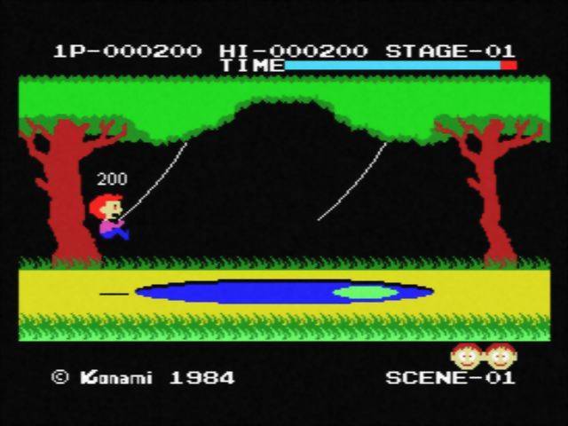 Não há muito a dizer sobre este jogo, na verdade. Aqui controlamos um rapaz que atravessa uma pista de obstáculos no meio da natureza, o que o levará a saltar entre plataformas, balancear-se entre cordas, tudo isto enquanto se desvia de projécteis, bolas de fogo ou até animais como abelhas gigantes ou peixes que teimam em saltar fora de água só para nos atrapalharem a vida. É também um jogo simples nas suas mecânicas visto que o único botão de acção que temos disponível serve para saltar. É no entanto um jogo bastante exigente no que toca à precisão dos saltos e ao mínimo deslize perdemos uma vida. Sempre que ultrapassamos um obstáculo ganhamos pontos e com pontos suficientes vamos ganhando também vidas extra. Cada “nível” está dividido em 10 ecrãs que teremos de atravessar dentro de um tempo limite e quanto mais rápido o conseguirmos fazer, mais pontos amealhamos também. No entanto, tal como muitos outros jogos mais simples desta época, não existe propriamente um fim e o jogo vai-se repetindo com a complexidade dos obstáculos a aumentar progressivamente.
