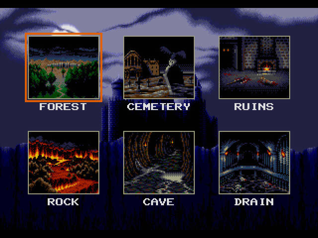 No que diz respeito ao aspecto audiovisual, Undead Line é competente, embora não figure entre os shmups mais impressionantes da Mega Drive. Ainda assim, aprecio bastante a sua estética de dark fantasy e os pequenos detalhes presentes nos níveis. Num dos cenários, por exemplo, exploramos um cemitério onde destruir campas faz surgir fantasmas prontos a atacar. Outros níveis introduzem obstáculos adicionais, como paredes móveis ou jactos de lava, que acrescentam variedade ao desafio. Os inimigos seguem uma linha estética coerente e os bosses são, regra geral, grandes e bem detalhados. Já a banda sonora destaca-se pela positiva, com composições de forte influência rock, algo muito característico de jogos do mesmo género na Mega Drive e que me agrada particularmente.