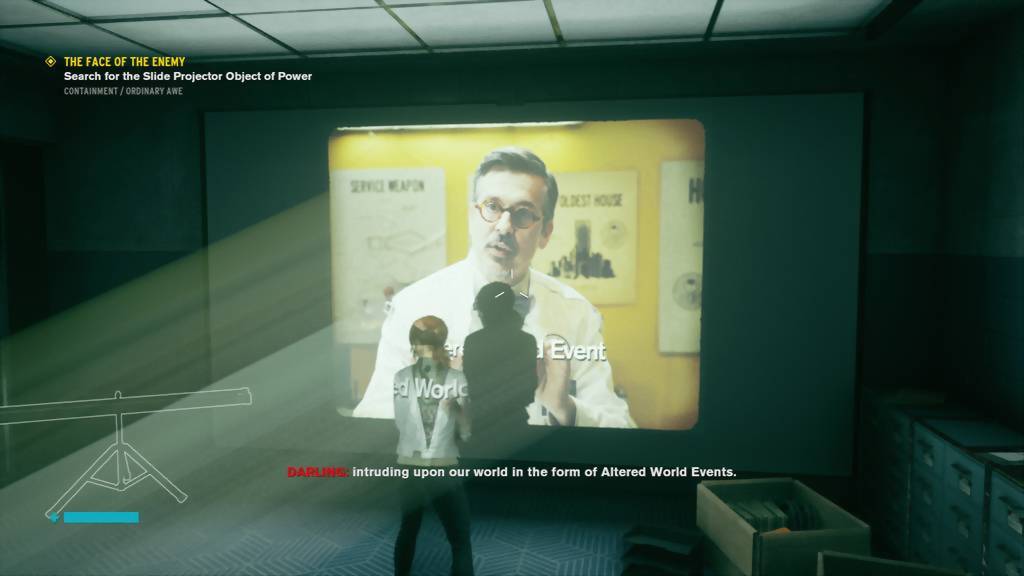 Tudo isto é apresentado com uma identidade visual muito própria e bem conseguida. Apesar de a narrativa decorrer num contexto contemporâneo, o interior do edifício apresenta uma estética fortemente inspirada nas décadas de 60 e 70, repleta de tecnologia antiquada como monitores CRT, gravações em fita magnética e outros elementos analógicos. À boa maneira da Remedy, existem também várias sequências com actores reais, integradas de forma coerente com essa estética visual. Do ponto de vista técnico, trata-se de um dos primeiros jogos de grande perfil a tirar partido de efeitos de ray tracing, algo que acabou por penalizar as versões originais de PS4 e Xbox One em termos de performance. No meu caso, jogando na Xbox Series X, optei sempre pelo modo qualidade e não notei quebras de desempenho significativas. Curiosamente, comecei por engano a jogar a versão de Xbox One e, pelo menos numa fase inicial, não identifiquei diferenças particularmente evidentes entre ambas, o que poderá dever-se ao facto de estar a jogar numa Xbox Series X, um sistema naturalmente mais capaz.