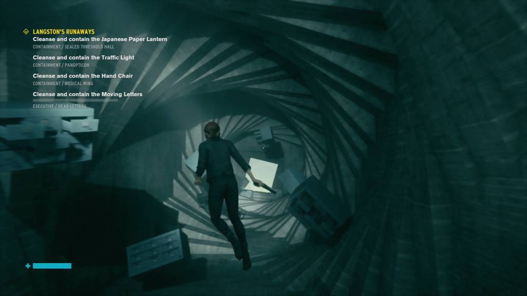 Control é então um jogo de acção com elementos de metroidvania, apresentando um mundo semi-aberto repleto de segredos que vão sendo desvendados à medida que desbloqueamos novas habilidades. Jesse possui poderes sobrenaturais como telecinese ou a capacidade de levitar, ambos extremamente úteis tanto na exploração como no combate. Os confrontos tendem a ser intensos, com vários inimigos a surgirem em simultâneo, apresentando padrões de ataque agressivos e coordenados, obrigando-nos a estar constantemente em movimento e a tirar partido de todas as habilidades disponíveis, assim como dos elementos do cenário para procurar algum abrigo. Sempre que morremos, perdemos uma pequena percentagem dos recursos obtidos e regressamos ao último control point utilizado. A barra de vida regenera automaticamente apenas até um certo ponto (bastante abaixo do total), sendo necessário recolher os cristais luminosos largados pelos inimigos para recuperar totalmente a energia. Sempre que interagimos com um control point, a nossa vida é também restaurada por completo.
