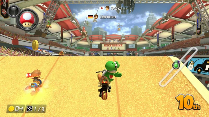 Mario Kart 7, da Nintendo 3DS, já tinha sido uma óptima surpresa, sobretudo por introduzir a mecânica dos karts que se transformam, permitindo atravessar segmentos aéreos ou subaquáticos. Mario Kart 8 recupera essa ideia e melhora-a de forma significativa ao acrescentar secções de anti-gravidade, que não só diversificam o design das pistas como também contribuem para uma sensação de velocidade e espectáculo ainda maior. Conduzir por paredes ou em loopings, em circuitos que por vezes parecem saídos de um F-Zero, resulta particularmente bem nos modos de maior dificuldade, como os 150 ou 200cc, onde o jogo exige mais controlo e antecipação. A personalização dos veículos regressa igualmente, permitindo ajustar carroçarias, pneus e asas, embora esta funcionalidade, sendo bem-vinda, acabe por ter um impacto mais subtil do que aquilo que à partida se poderia esperar.